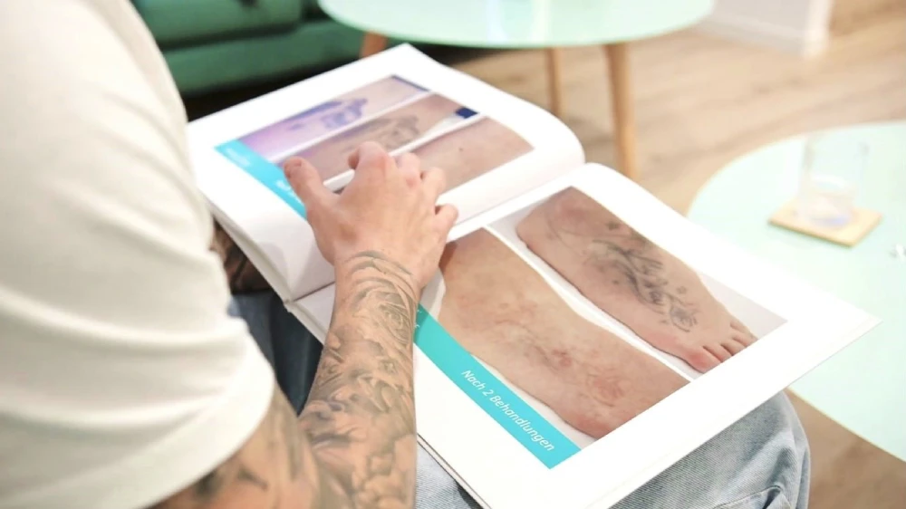 Wir begutachten Ihr bestehendes Tattoo und Sie erhalten alle notwendigen Informationen sowie einen Behandlungsplan inklusive einer Einschätzung der für Ihre Cover-Up Aufhellung anfallenden Kosten und Dauer. Wir bieten ebenfalls eine Probe-Laserbehandlung einer kleinen Stelle Ihres Tattoos an, um Ihnen mögliche Bedenken vor einer Cover-Up Aufhellung zu nehmen.