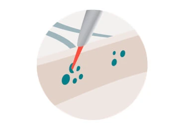Beim Microblading hingegen werde diese Farbpigmente durch feinstes Einritzen der Haut in die oberste Hautschicht (Epidermis) eingebracht. Diese Farbpigmente sind so groß, dass sie nicht vom Körper abgebaut werden können und somit dauerhaft in der Haut verbleiben. Beim Lasern von Permanent Make-Up werden diese Farbpartikel erhitzt und „aufgesprengt“, sodass sie in kleine Farbpigmente zerfallen (Bild B).